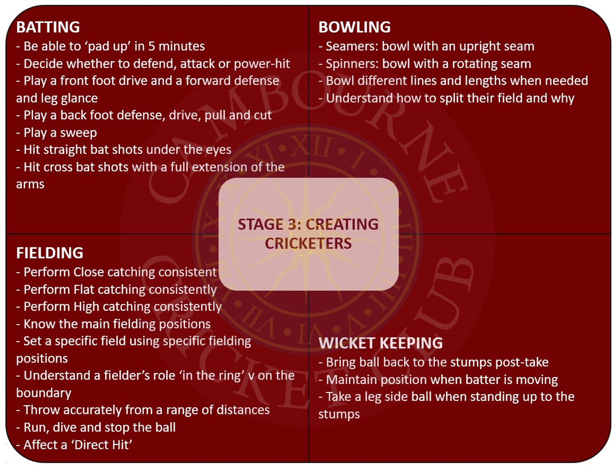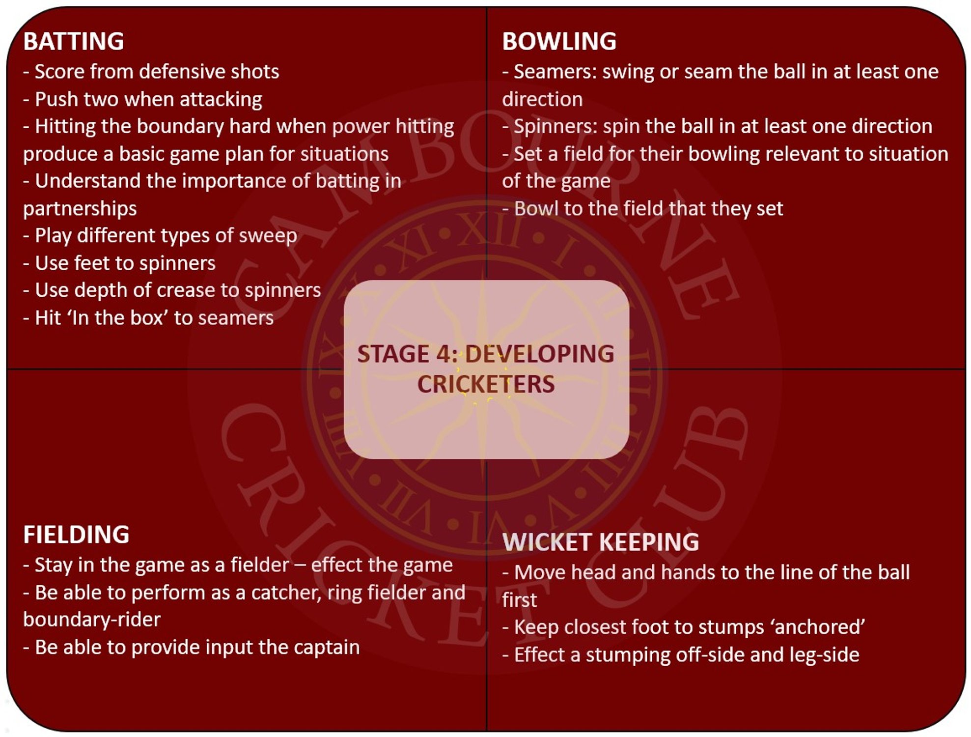 Stage 4: Developing Cricketers